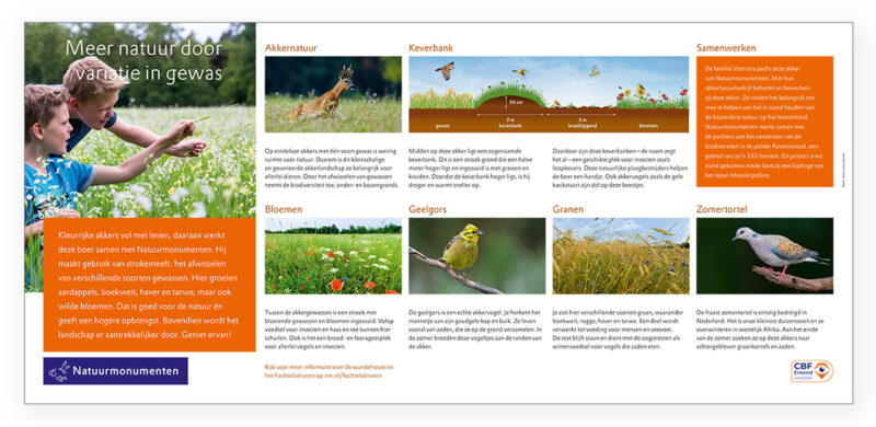 Kleurrijke akkers vol met leven, daaraan werkt deze boer samen met Natuurmonumenten. Hij maakt gebruik van strokenteelt: het afwisselen van verschillende soorten gewassen. Hier groeien aardappels, boekweit, haver en tarwe, maar ook wilde bloemen. Dat is goed voor de natuur én geeft een hogere opbrengst. Bovendien wordt het landschap er aantrekkelijker door.