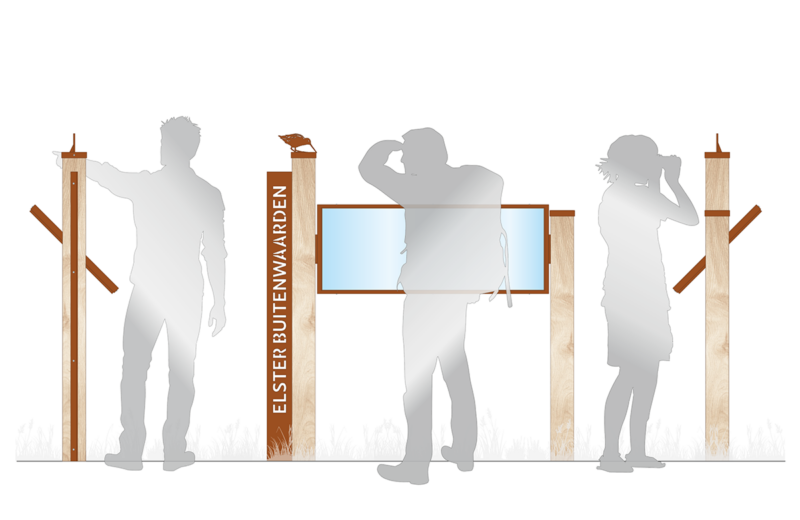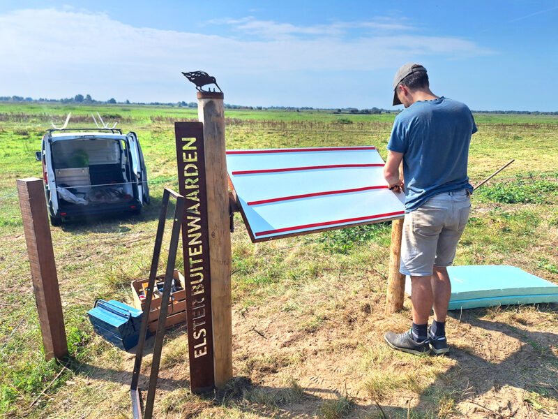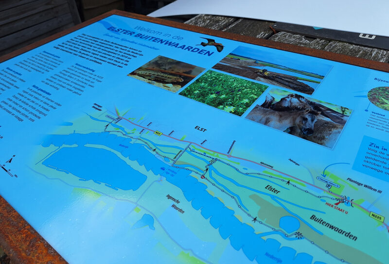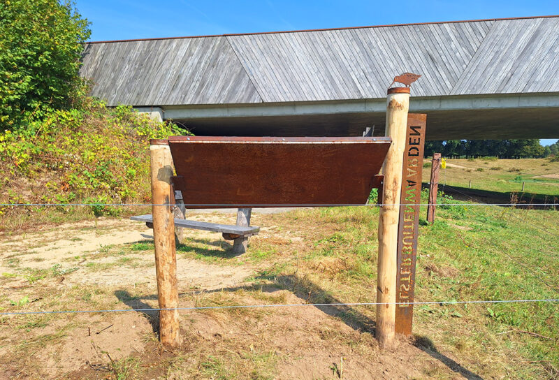 Buro NIV realiseerde een informatiemeubel bestaand uit een corten frame, tekstbord en in contour gesneden icoonsoort voor het gebied (watersnip) en kastanjehouten palen. We verzorgden dit project van a tot z: van tekstcreatie, grafisch en ruimtelijk ontwerp tot en met de realisatie en plaatsing.